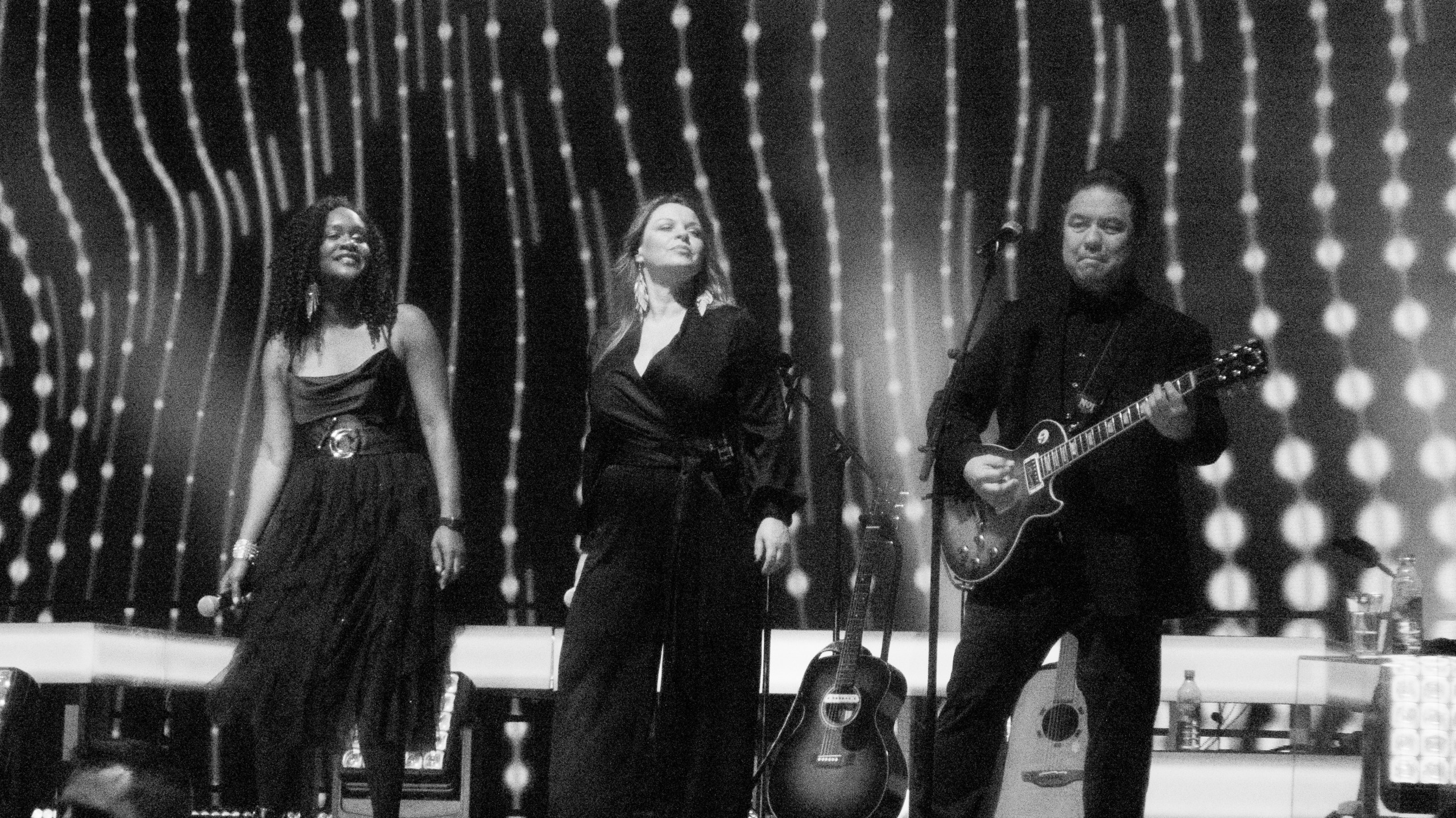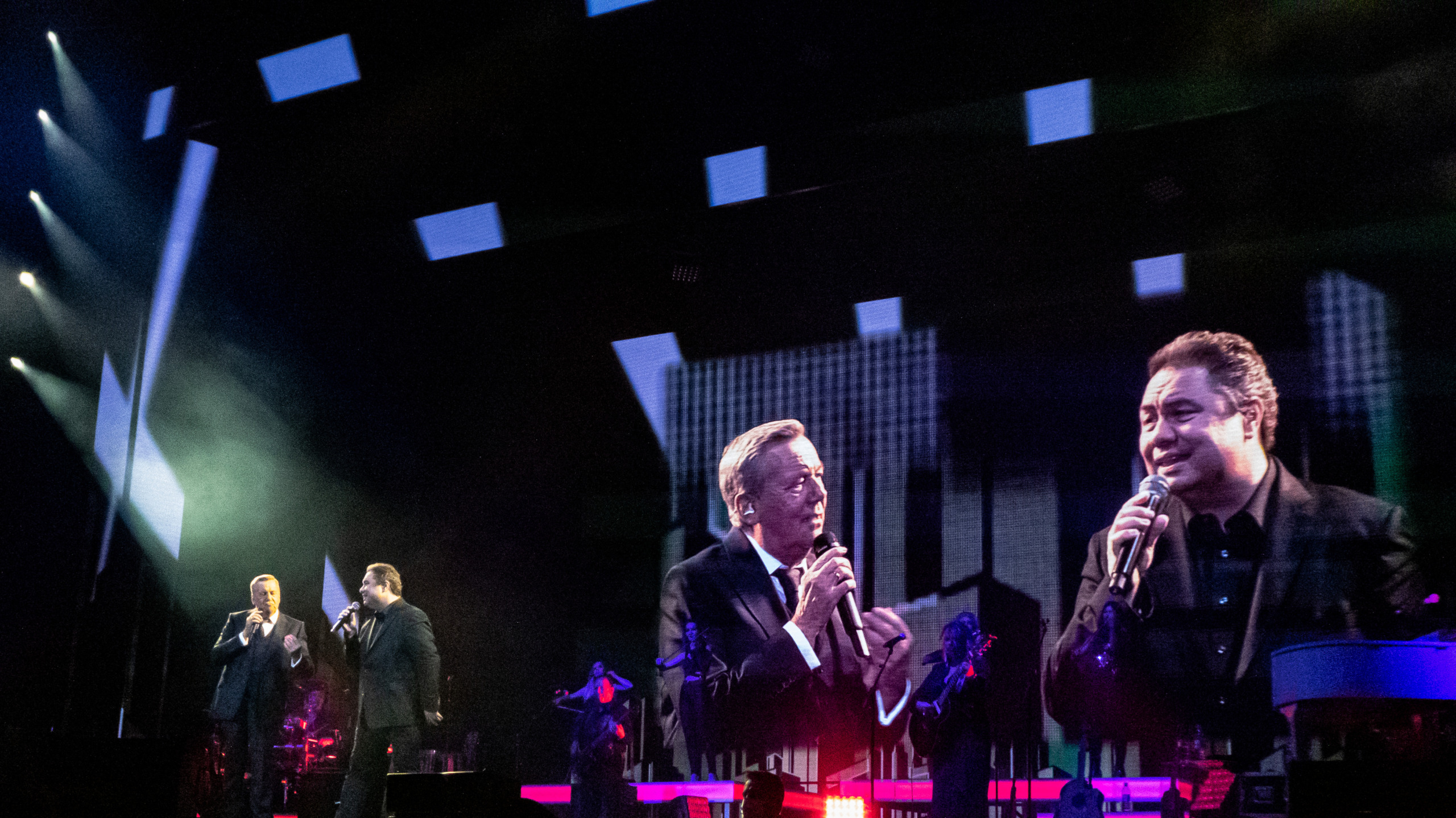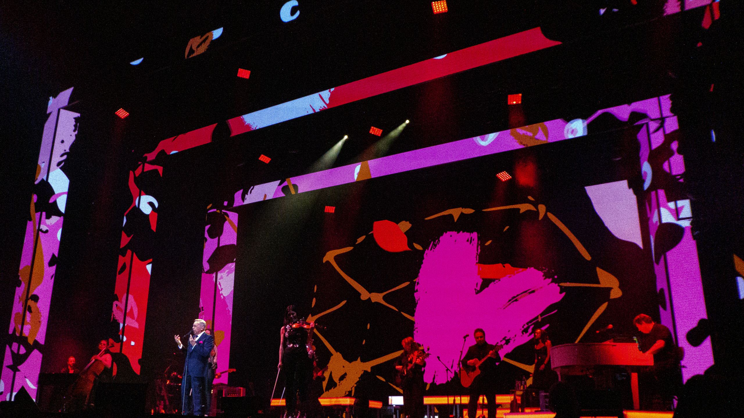 Untermalt wurden die Titel nicht nur von einer hervorragenden Band, sondern auch von der besten Bühnenshow, die ich persönlich je gesehen habe. Alles passte perfekt zusammen. Die Videos zu den Singles liefen im Hintergrund auf der Leinwand, jedoch nicht als klare Bilder, sondern eher wie Comics. Für die „Tiefe des Raums“ sorgten drei große Gerüste mit LED-Wänden. Ob die Bühne jetzt in knalligen Farben wie bei „Santa Maria“ oder schlicht in Schwarz/Weiß erstrahlte, es war einfach ein überwältigender Anblick.